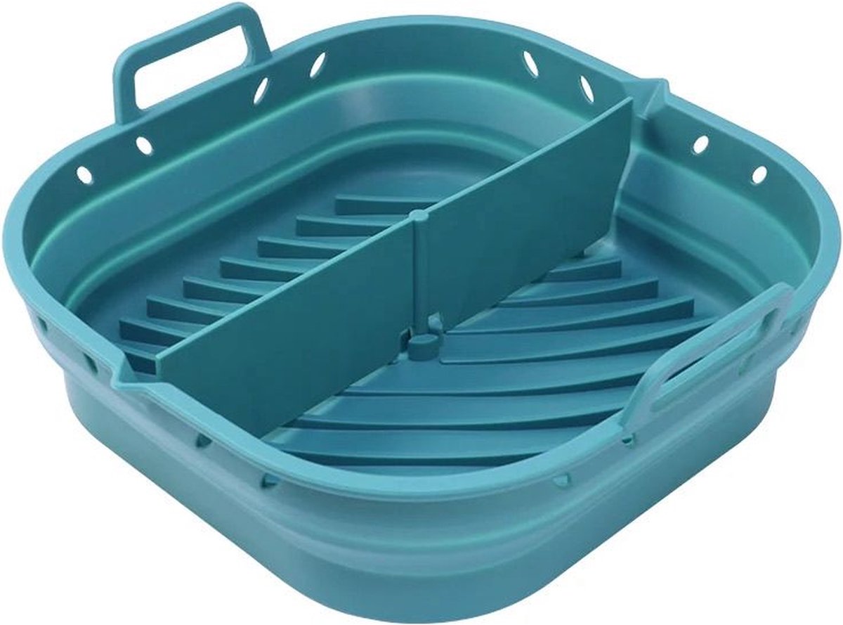 Airfryer Inklapbaar Siliconen Bakje – Blauw vierkant 8.5 inch- Accessoires Voor Heteluchtfriteuse – Airfryer Bakpapier voor Airfryer