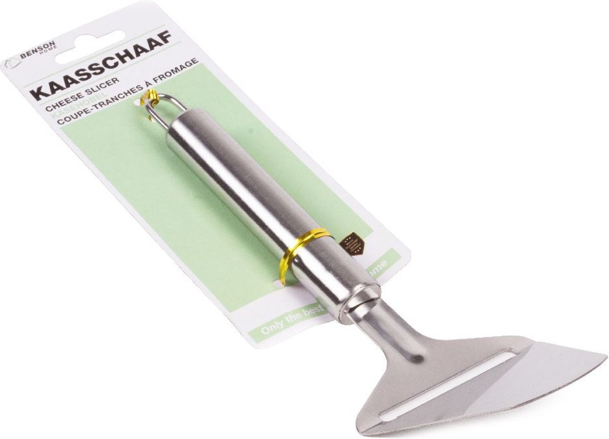 De schaaf is voorzien van een ophangoog, hierdoor is de kaasschaaf na gebruik op te hangen. Voor het schaven van kaas en komkommer.