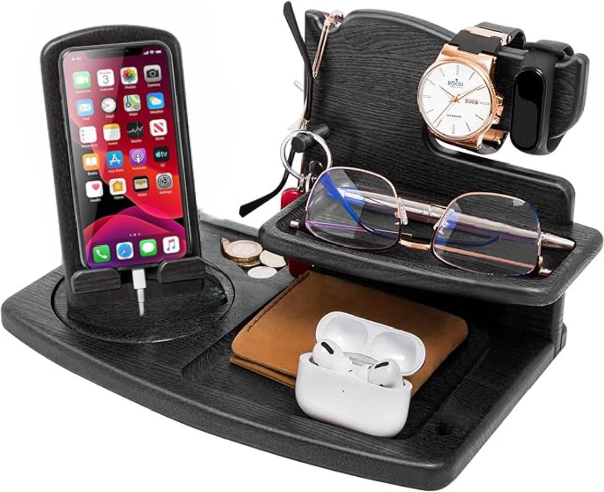 Cadeaus voor mannen Nachtkastje Organizer Kerst Verjaardagscadeaus voor Hem Papa Geschenken Hout Docking Station voor Mannen Sleutel Portemonnee Horloge Organizer Geschenken voor Papa Gadgets
