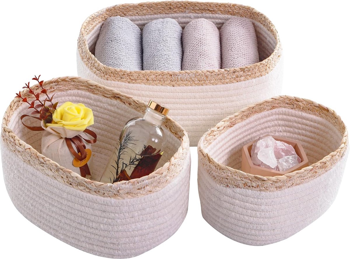 Gevlochten opbergmand, 3-delige set, decoratie voor badkamer, woonkamer, kinderkamer, slaapkamer, organizer van planken, kasten, luiertafel voor handdoek, speelgoed opslag