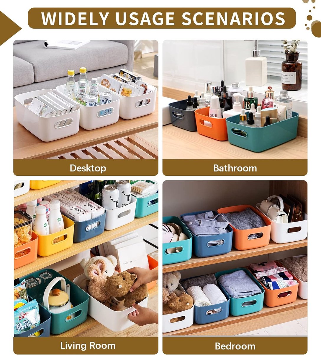 Duurzaam en van hoge kwaliteit: deze opbergmanden zijn gemaakt van uitstekend plastic materiaal, dat sterk genoeg is om niet gemakkelijk te buigen of te breken bij het opbergen van zware voorwerpen en duurzaam voor langdurig gebruik. Deze opbergmandset heeft 7 heldere kleuren, zodat je je rommel volgens verschillende kleuren kunt organiseren om een stijl voor je leven te creëren.