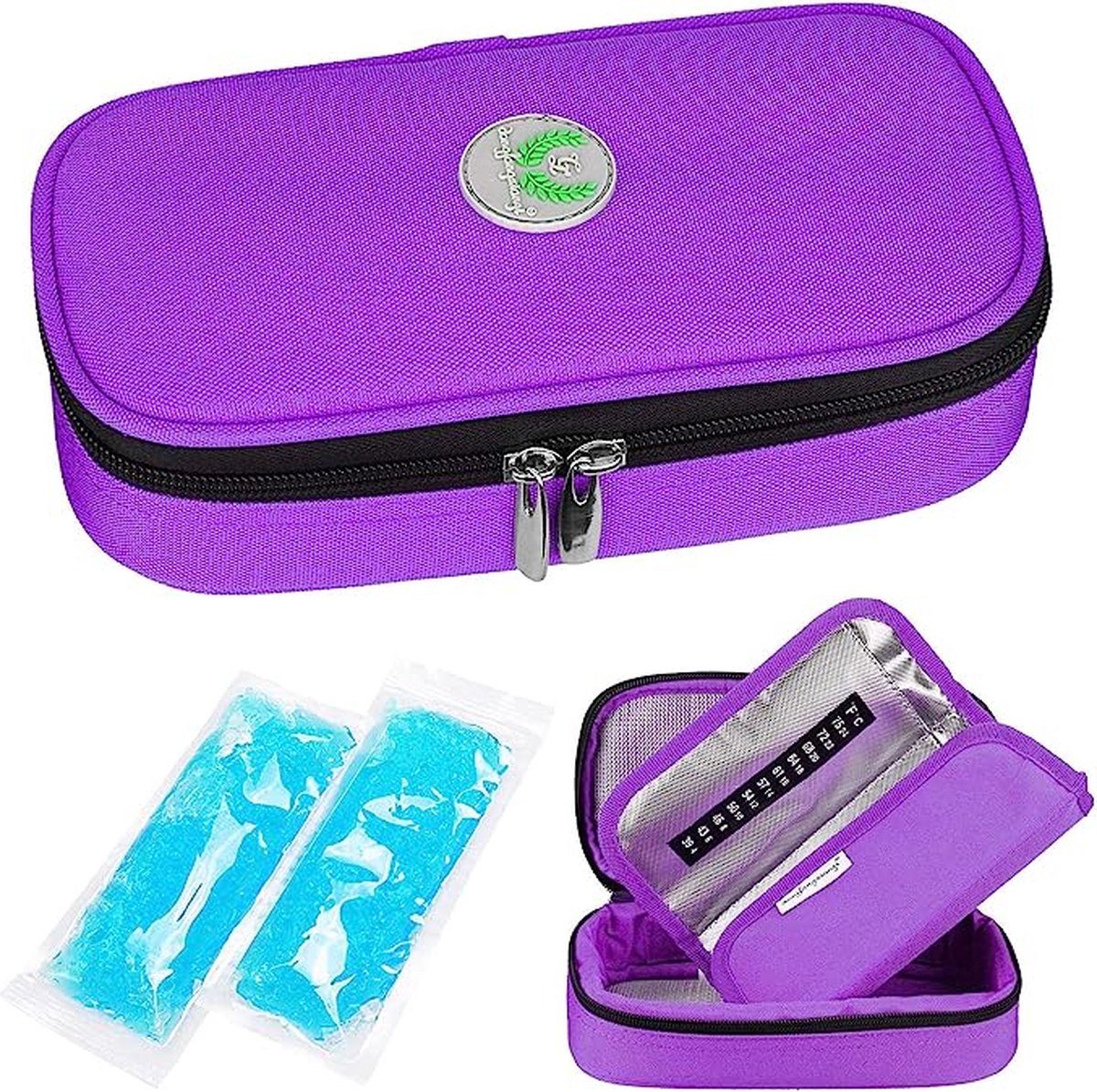 In de diabetici-tas is er een temperatuurweergave in interlayer, zeer handig voor op reis om de status van het geneesmiddel te controleren. Klein en licht, speciaal ontworpen om pennen, teststrips containers en landetten te nemen.