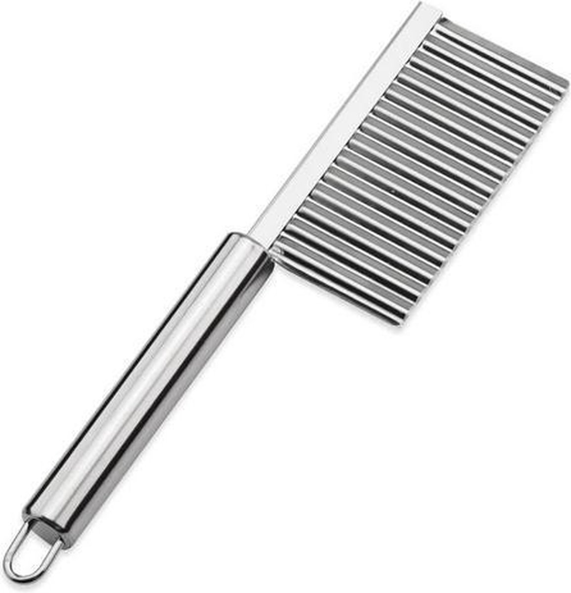 Met zijn handige ergonomische ontwerp met RVS snijblad is dit kartelmes zowel comfortabel in gebruik als duurzaam. Maak uw eigen ribbel patat of luxe gesneden groenten.