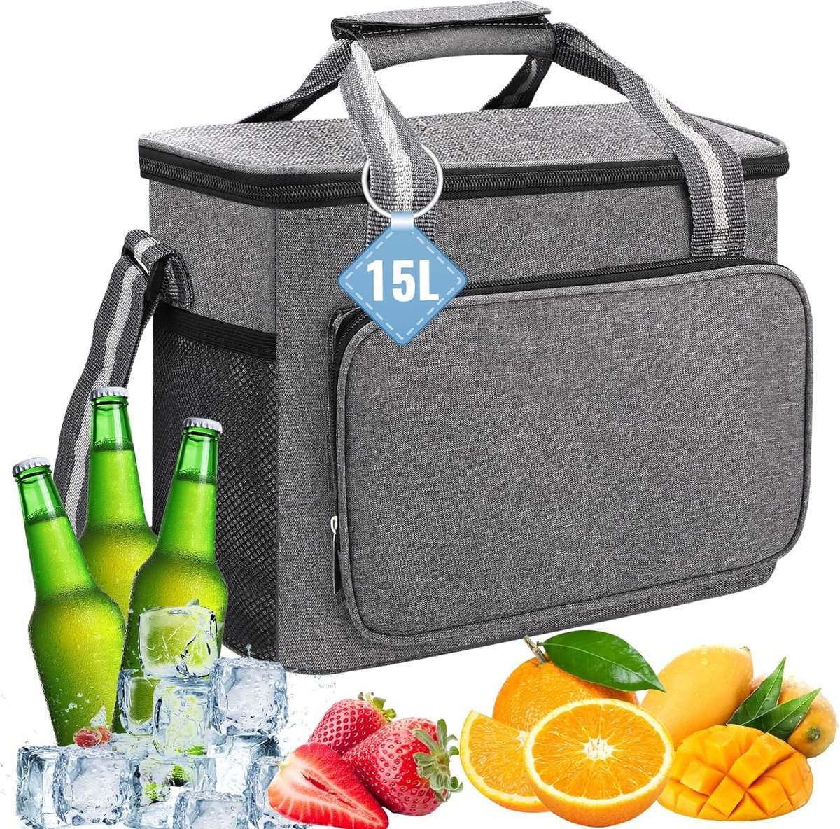 Warmte- en koudebehoud: ideaal voor lunch, bestek, dessert, fruit, yoghurt, enz. De koeltas voor lunch blijft ongeveer 4-6 uur koel. Voor warm eten ongeveer 3-4 uur. Ideaal voor werk, school, sport, kamperen, picknick, reizen, strand en barbecues. Capaciteit van 15 L: grootte van de koeltas voor lunch (ongeveer): 31 x 19 x 23 cm, capaciteit van 15 L, onze draagbare picknicktas heeft een volume van maximaal 15 liter. Je kunt je favoriete drankjes plus ijs meenemen. Waterdicht en lekvrij: dankzij de hot press-technologie is de koeltas waterdicht en lekvrij, de buitenkant van de koeltas is gemaakt van 600D Oxford-stof. De binnenbekleding is gemaakt van PEVA-folie en EPE-isolatiemateriaal, waardoor voedsel en dranken lang koel of warm blijven. Duurzaam en scheurbestendig, ge