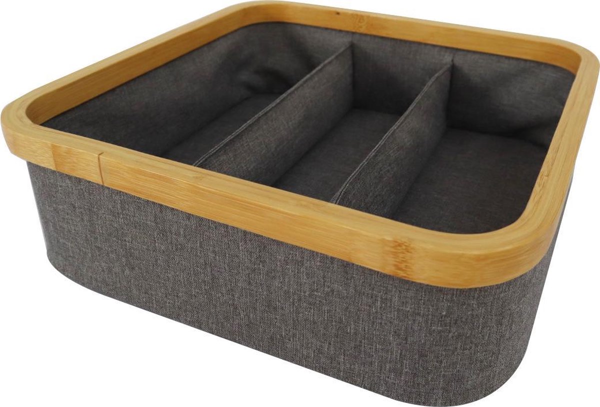 Opbergmand | Kastorganizer | Opberger | Bamboe frame | 30x30x9cm | Grijs | 3vaks