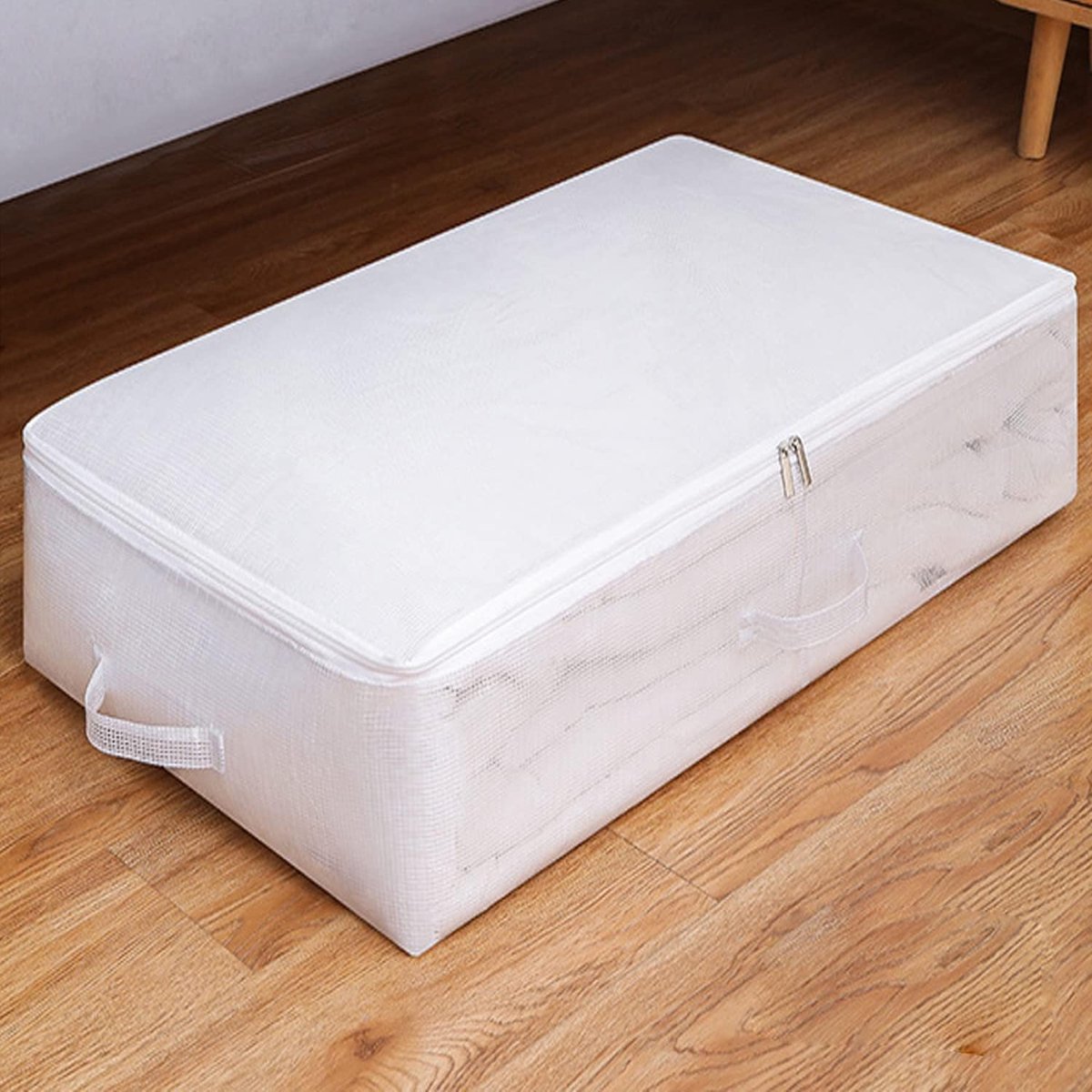 Zuivere handvatten: de brede handgrepen van de opbergcontainers onder het bed zijn dubbel gestikt met dik pvc, stevig genoeg om uit het bed te trekken en in je huis te verplaatsen