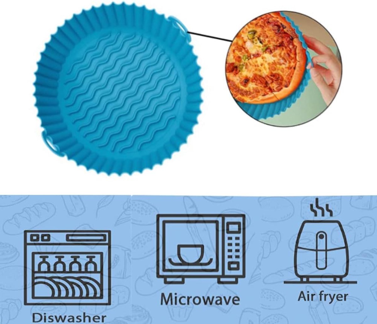 Breed toepassingsgebied: de siliconen heteluchtfriteuse is een geweldig extra keukenaccessoire, geschikt voor broodrooster, stoompan, oven, instant-pan, magnetron enz. Het is geschikt voor familiekoken, kamperen, grillen enz., licht en praktisch.