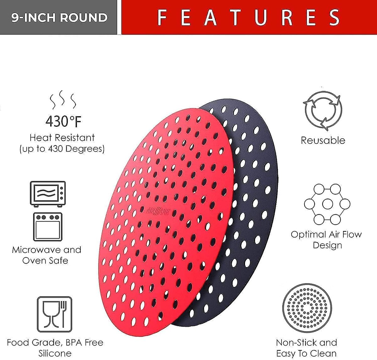 Siliconen Air Fryer Liner Rond, 2 STKS 9 Inch Non-Stick Airfryer Siliconen Liners Herbruikbaar, Bestand Warmte Gemakkelijk schoon te maken Siliconen Air Fryer Matten voor Keuken Bakken
