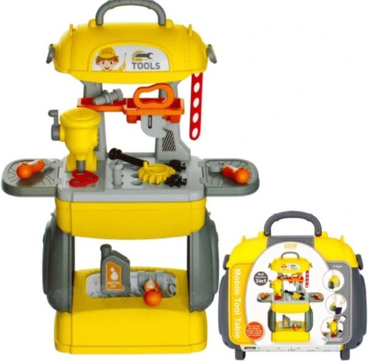Inclusief 28 Onderdelen: De set bevat een doe-het-zelf-werkplaats, een verscheidenheid aan gereedschap zoals schroevendraaiers, schroeven, schroefdoppen, een zaag en andere handige accessoires.