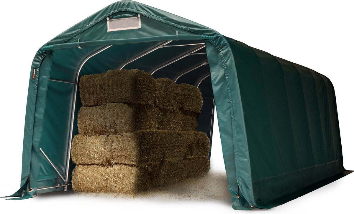 Stabiele weidetent 3,3×7,2 m brandvertragend PVC-zeil 2300N weidetent onderdak, voor betonondergrond, groen